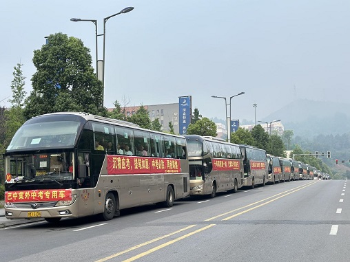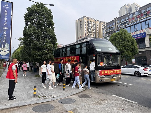 为给中考考生提供良好的乘车环境,保障广大考生安全、准时赴考,江北客运中心站提前安排, 精心组织,今年车站调配了14台大巴车参与送考服务,点对点接送棠湖外国语学校的考生到巴中四中参加中考。
