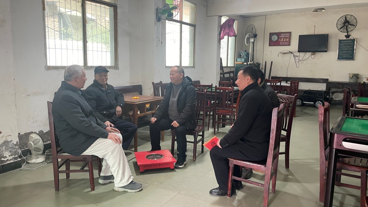 (图为:慰问组一行在公司家属院俱乐部看望原汽车第47队分管安全副队长李仁福和技安员严成兴。)