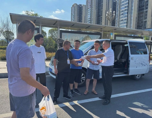 公司党支部书记苟于浩、工会主席彭跃强带队深入各片区站点、调度点及行车一线,为职工发放防暑降温物资。慰问组详细了解职工工作强度及作息安排,特别叮嘱驾驶员要注意高温天气下的自我防护,确保行车安全。