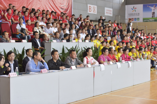 (图为裁判组成员认真观看各代表队比赛)