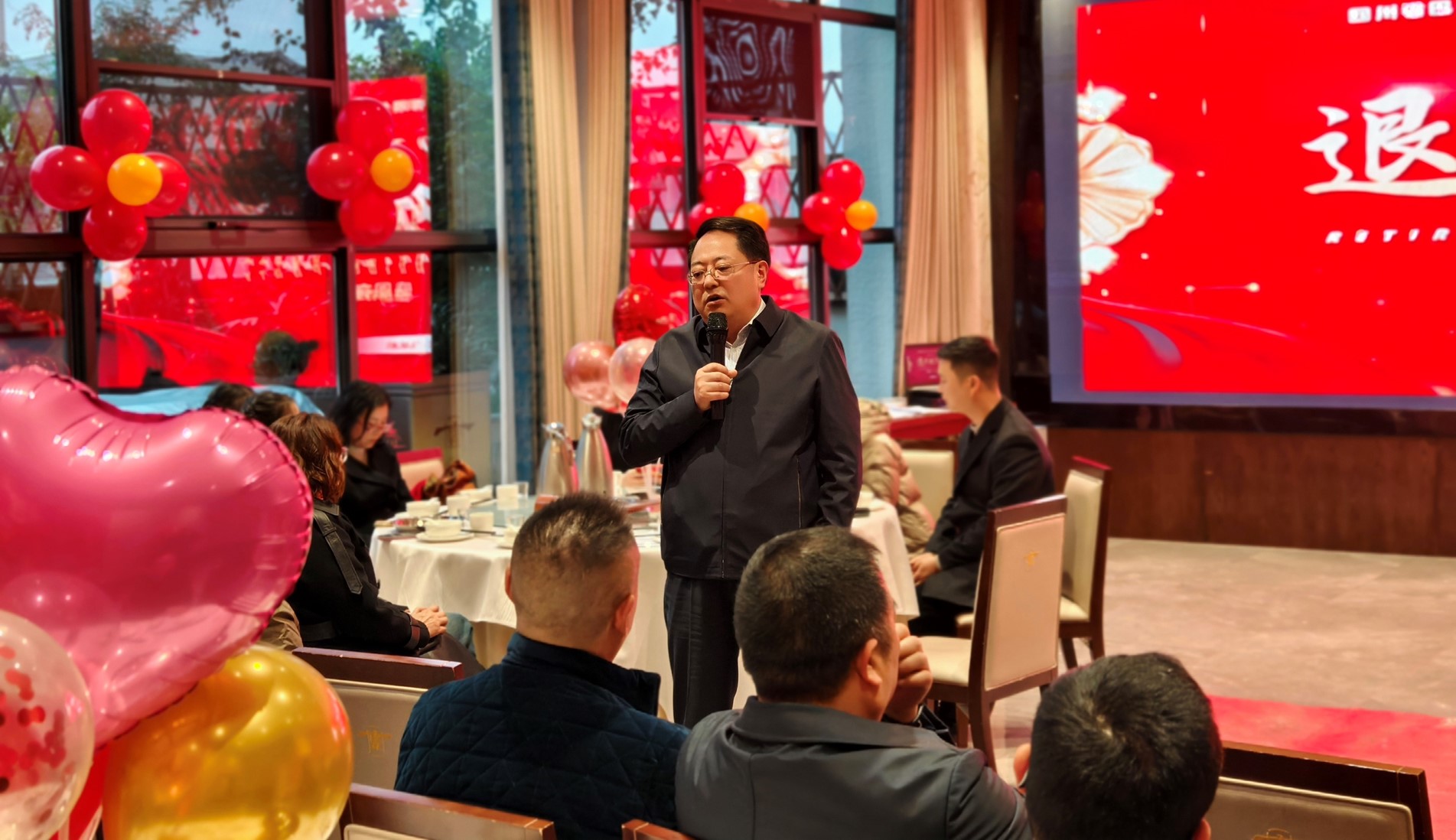 (公司党委副书记、总经理谢茂松为退休职工送上祝福)