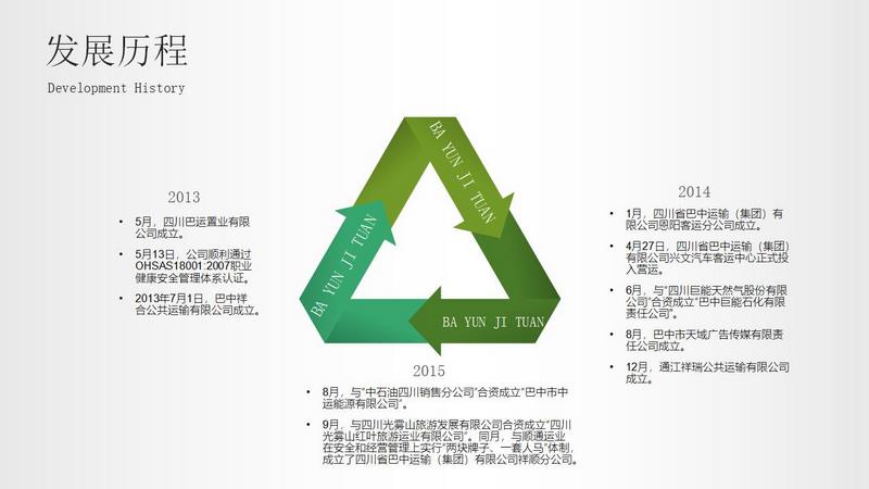 巴运集团成立于1993年10月,注册资本金3581.4745万元,资产总额16亿元,现系市国资运营集团二级子公司。公司具有国家一级客运资质,被交通运输部列为重点联系企业,先后荣获“四川省文明单位、中国道路运输百强诚信企业、五星级汽车客运站”等荣誉称号。公司核心业务涵盖道路客运、城市公交、出租汽车、汽车检测、汽车维修、汽车租赁、智慧停车、城管服务、能源销售、航线运营等多个领域,培育新能源汽车充电站(桩)、广告等增值业务。公司拥有各类运输车辆1300余台、客运线路300余条、客运站8个、加油加气站3座。现有员工近900人,其中:中共党员145人,初级以上技术职称55人。