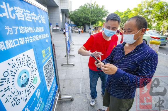 (站务人员引导旅客进站扫健康码)
