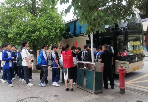 5月9日中午,江北客运中心站将巴中经开区棠湖外国语学校初三体考的学生接送到巴中光正实验学校参加毕业体考。