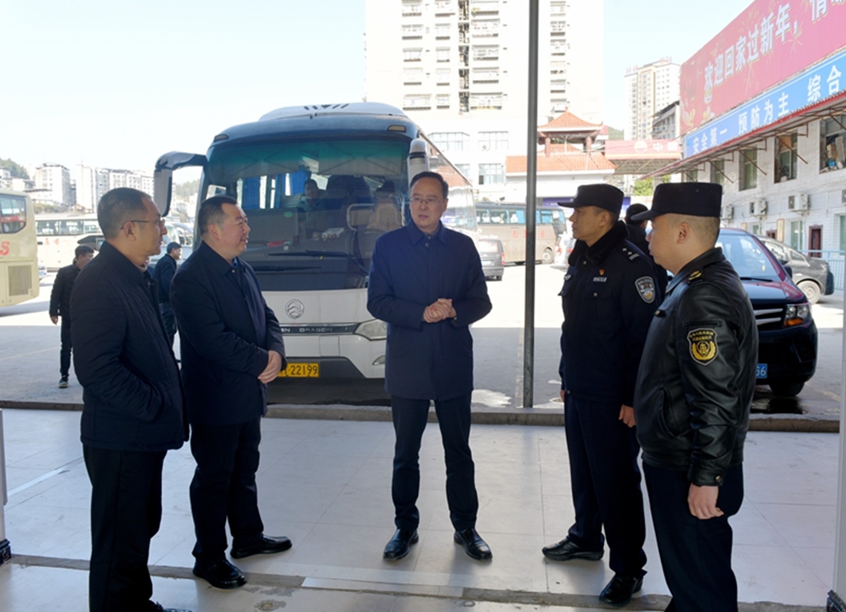 2 月 3 日上午,通江县委副书记、县长谭青松前往巴运集团通江分公司通江车站和城南车站,检查春运安全运输工作,慰问一线人员。