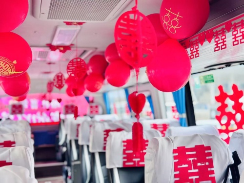据了解,新人选择巴运集团的大客车作为接亲工具,主要基于其“三大亮点”:首先是空间宽敞,能够容纳20余位以上亲友一车同行,使得迎亲过程更加热闹;其次是装饰喜庆,车辆外观及内饰可根据新人的需求进行定制,营造出浓厚的婚礼氛围;第三是费用经济,与传统婚车车队相比,节省费用。“这种方式既经济又富有创意,还能让亲朋好友共同分享喜悦,具有特别的意义。”