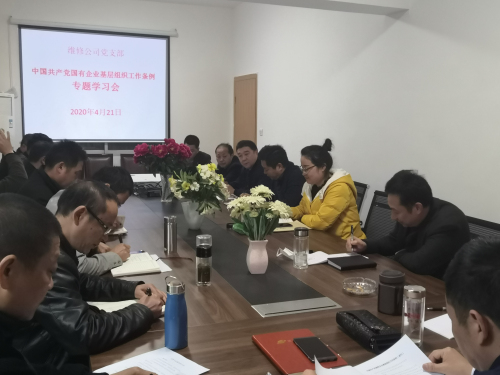 2020年4月21日下午,维修公司党支部组织在岗党员、副科长以上非党员管理者、入党积极分子集中学习宣讲《中国共产党国有企业基层组织工作条例》,拉开了宣贯《条例》的序幕。