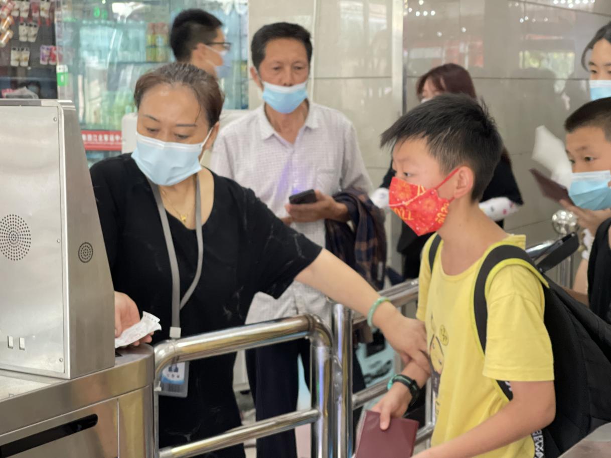 (站务员为未成年儿童进行检票登记)