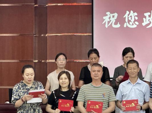 活动中,支部书记丁从康同志、组织委员朱铭同志为全体党员赠送贺卡。随后,全体党员面对党旗,庄严地举起右拳重温入党誓词,党员代表宋丽娅结合自身实际分享了入党故事和心得体会,并表示要继承和发扬党的优良传统,永葆忠诚干净担当的政治本色,用实干笃行回报党组织的关心培养。