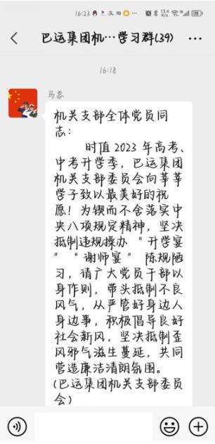 (图为机关支部发送坚决抵制违规操办“升学晏”“谢师晏”陈规陋习的信息提醒)