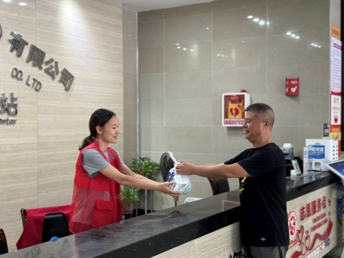 (江北客运中心站为一线职工发放防暑降温药品)
