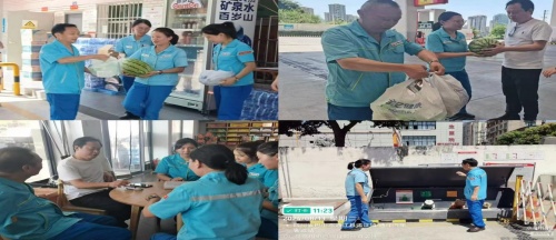 为预防高温中暑和安全生产事故的发生,保障一线员工安全度夏,把公司的关爱送到基层。2024年8月15日,公司董事长岳勇、总经理何超带领相关部门深入各加油站看望慰问在高温下奋战的一线员工,将防暑降温物品送到员工手中,叮嘱大家做好自我防范,预防高温中暑,确保健康。