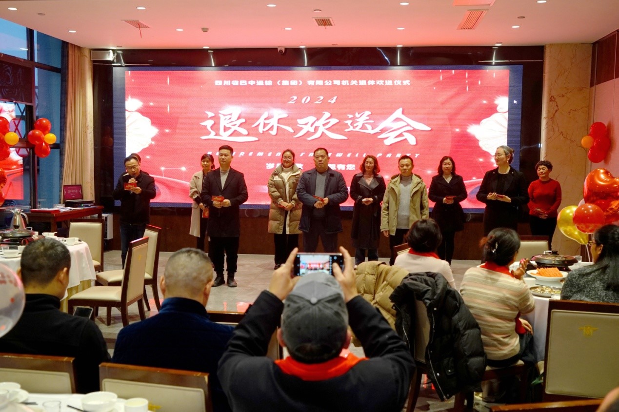 岁末之际,巴运集团温情满溢,一场精心筹备的 2024 年退休欢送会隆重举行,集团领导、职工代表齐聚一堂,共同为退休员工送上最诚挚的祝福,致敬他们为巴运集团奉献的青春岁月。