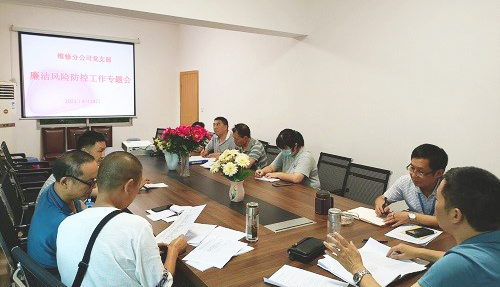 2021年8月24日,维修公司组织党员、副科长以上管理人员及财务、后勤等关键岗位人员,召开专题会,查找各自岗位、部门及单位廉洁风险点,制定防控措施。