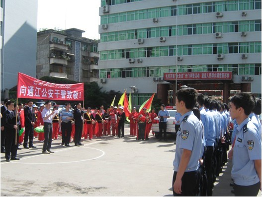 5月31日上午10时许,一支敲锣打鼓的队伍来到通江县公安局。 “向通江公安干警致敬”的横幅标语格外醒目,一尊具有特殊意义维护正义的“牛”工艺赠品正面镌刻着“人民群众的安全卫士”九个琉金大字,引来不少市民驻足观望。原来,通江公安在今年春运成功破获了一起非法运输团伙案,一举抓获了扰乱运输市场,严重威胁旅客生命、财产安全的11名犯罪嫌疑人。为此,汽车158队以特别的方式表达了最真诚的谢意。