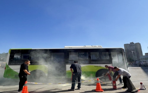 8时50分,应急逃生演练率先拉开帷幕。演练模拟一辆正在运行的客车突然自燃起火的紧急场景。车辆浓烟滚滚,乘客惊慌失措,情况万分危急。接到险情后,应急逃生演练组迅速响应,启动应急预案。疏散逃生组快速组织乘客从车上有序撤离,同时在现场摆放锥形桶、拉警戒线,做好安全隔离措施。火情处置组则在确认乘客安全疏散后,使用灭火器对起火部位进行灭火。整个过程紧张有序,各小组密切配合,仅用时15分钟,成功疏散所有乘客,扑灭火势,圆满完成了应急逃生演练任务。